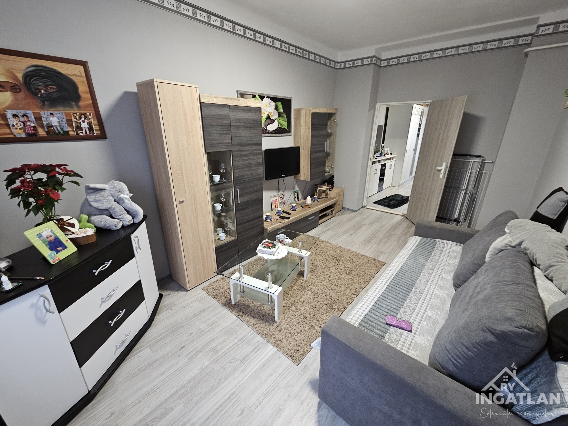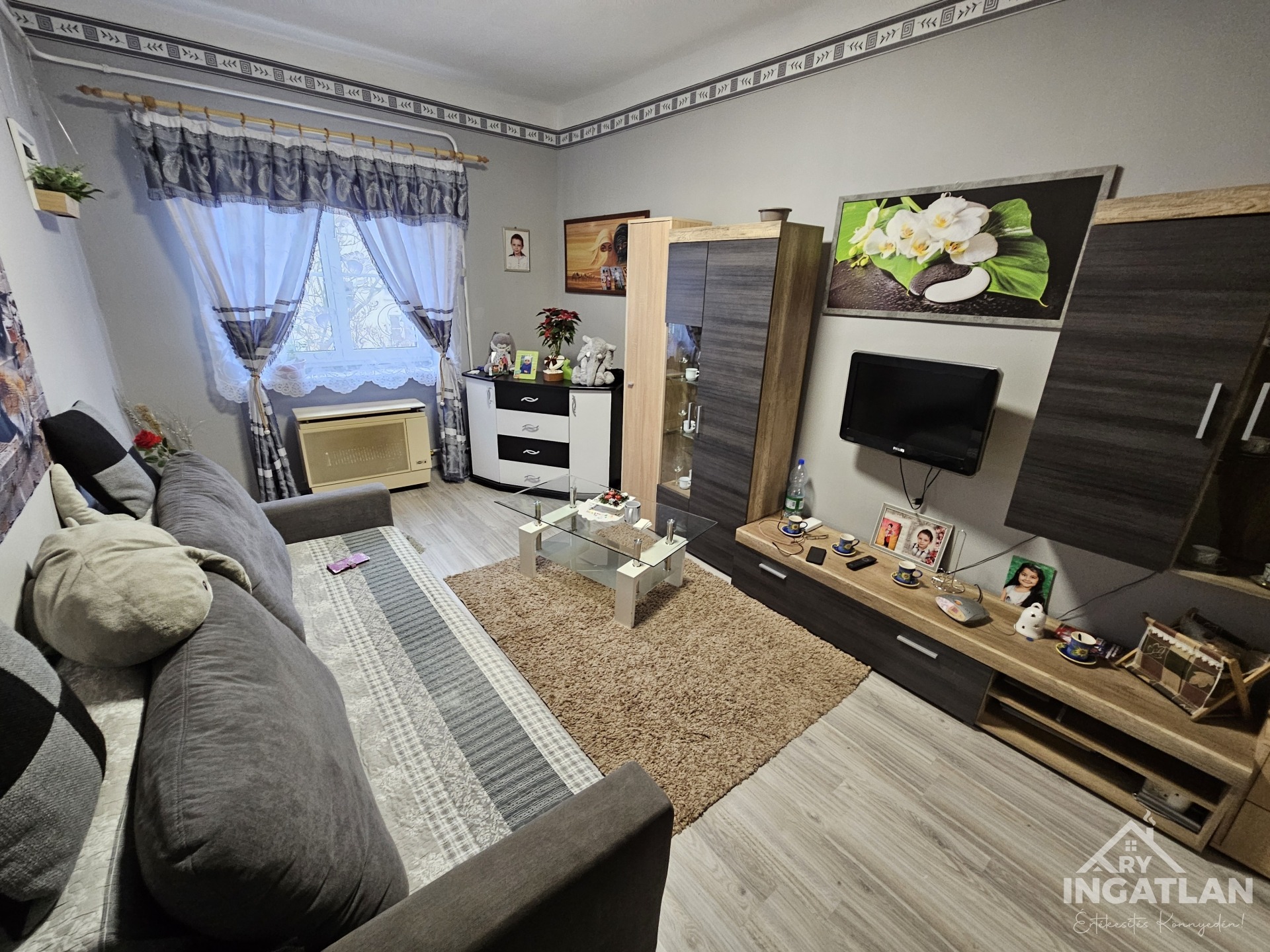 Eladó társasházi lakás Ózdon, a Bolyok városrészben, az Árpád vezér út 1. szám alatt, az első lépcsőházban.