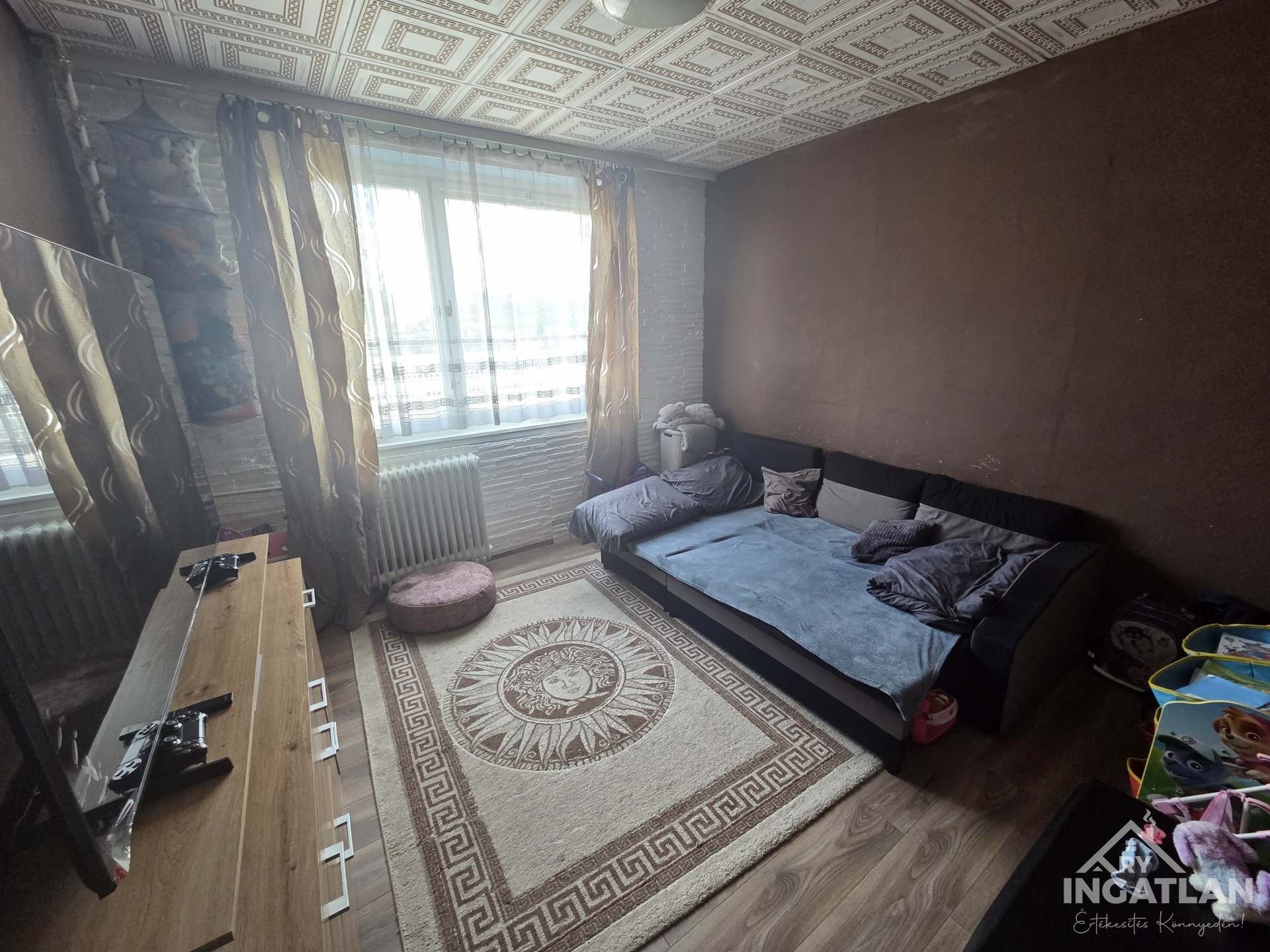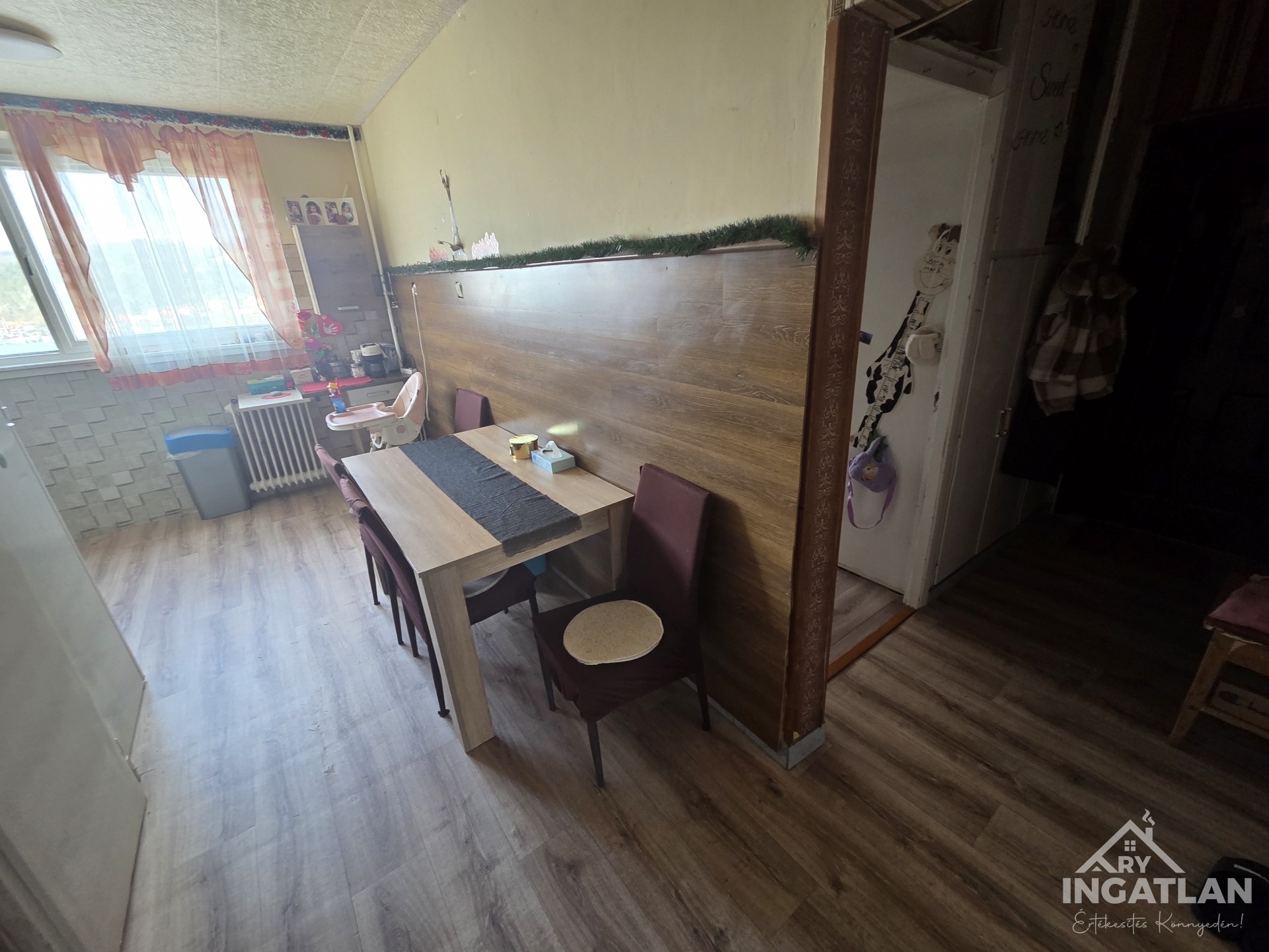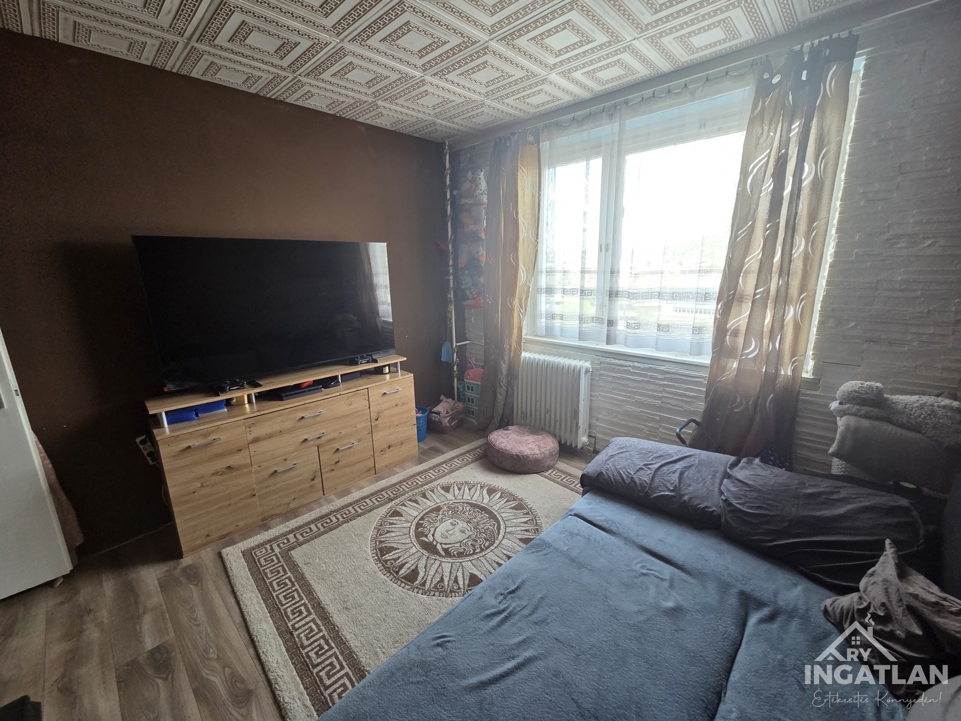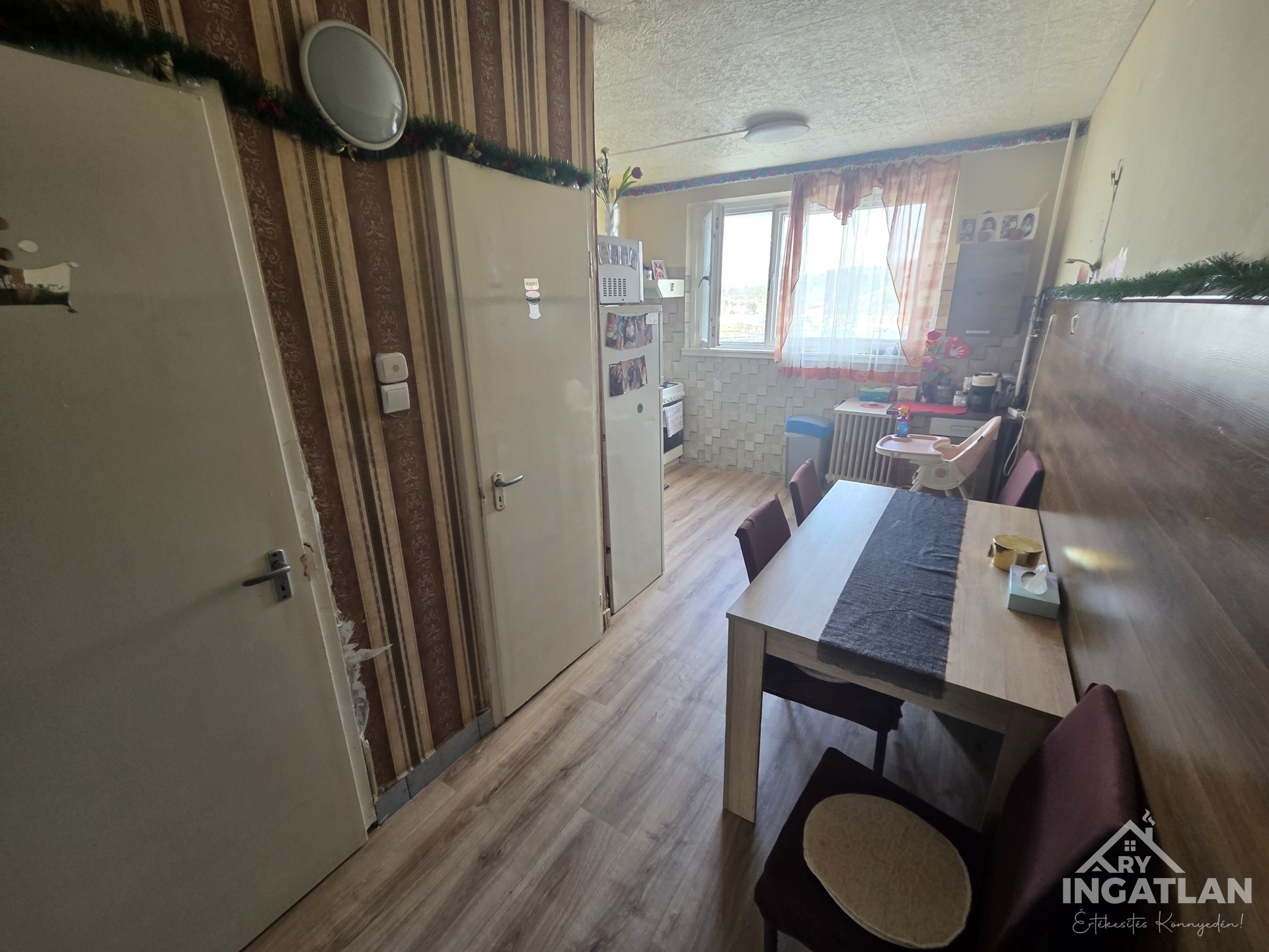 Eladó ingatlan Ózd város központjának szívében, a Nemzetőr utcán, a piac csarnok mögött, egy tízemeletes panel lépcsőházban, a hetedik emeleten.