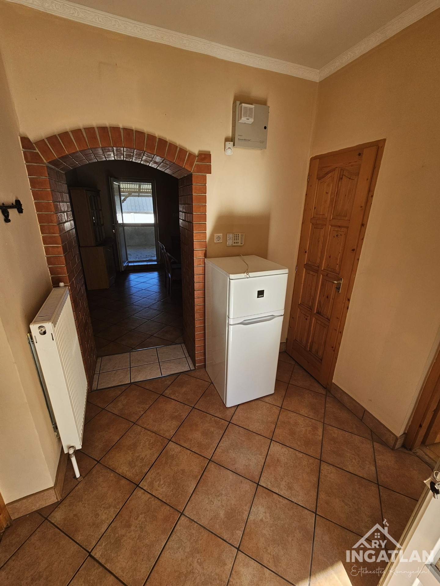 A belső terek kifogástalan állapotban vannak: a konyha hidegburkolattal, a szobák laminált padlóval burkoltak. Az ingatlan új tetőt és tetőszerkezetet kapott, cserépfedéssel, és a tetőtér beépíthető, így további két szoba és egy fürdőszoba kialakítására nyílik lehetőség.
